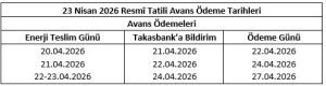 23 Nisan Tatili Elektrik Avans Ödemeleri Hakkında