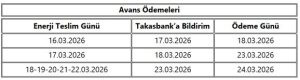 2026 yılı Ramazan Bayramı resmi tatili dönemine ilişkin “Elektrik Piyasası Avans Ödeme” tarih bilgileri aşağıdaki tabloda belirtilmiştir.